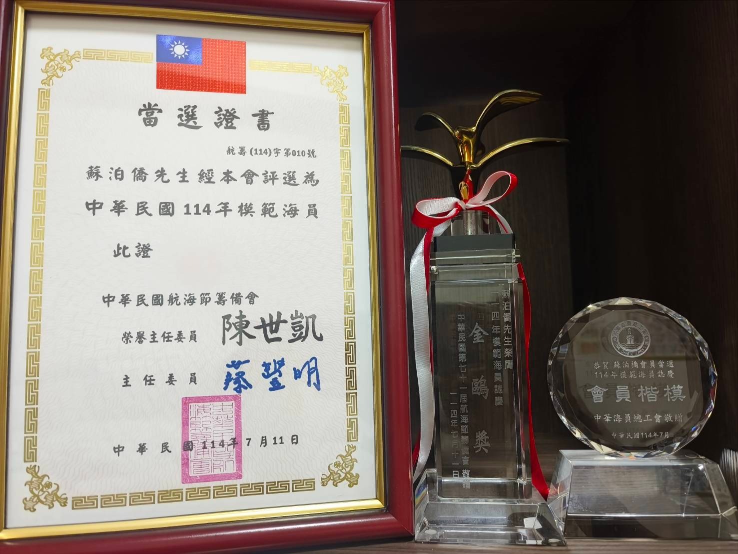 Mr. Su’s recognition as a Model Seafarer is not only an affirmation of his professional competence, but also a testament to the success of our industry–academia collaboration program. We look forward to seeing him continue to write his seafaring journey—using his original aspirations as his pen and his passion as his ink—as he sails forward, riding the winds and waves toward new horizons.