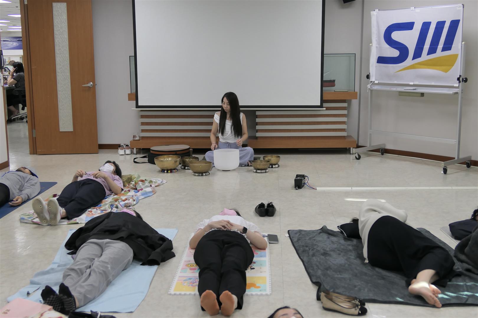 為了幫助同仁在忙碌的生活中找到身心的平衡,自 5月 起,我們特別安排為期 12 週的靜心冥想課程,並開放同仁自由報名參加。此次課程由專業的講師帶領,每週一次、每次半小時,讓同仁隨著頌缽沉靜悠遠的聲音,透過專注的呼吸與意念引導,進而放鬆身心、減輕壓力,並培養在日常工作中保持專注與穩定情緒的能力。過程中,參與的同仁認為透過定期的靜心冥想,不但可以緩解日常緊繃的生活工作挑戰,也讓自己更沉著的面對外界紛擾。